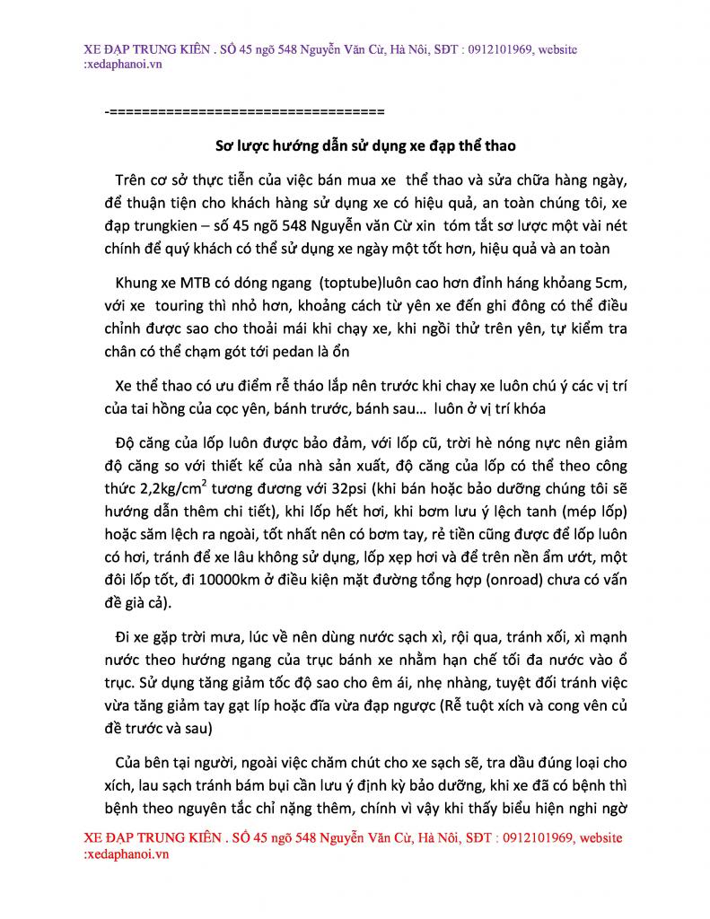 THÔNG BÁO: XE ĐẠP TRUNG KIÊN PHỤC VỤ XUYÊN TẾT...
