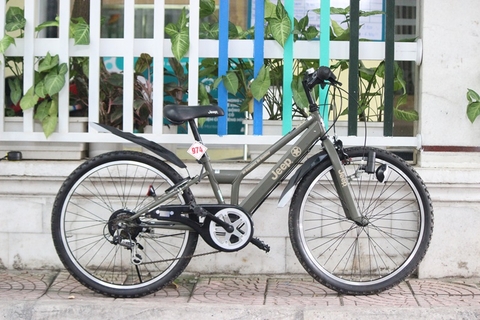Mã số 974, khung thép, sơn zin, sise 30 cm, gióng ngang 48 cm phù hợp cao hơn 1m30 cm, groups Shimano 1 đĩa 6 líp, đèn tỳ, vành 24...