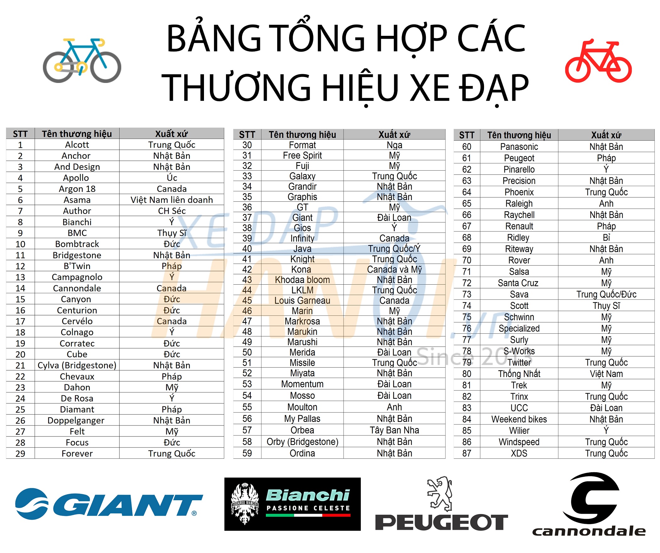 Sau thời gian nghiên cứu và tổng hợp, chúng tôi xin làm 1 bảng tổng hợp những thương hiệu phổ biến thường gặp nhất trên thị trường hiện nay để các bạn tiện theo dõi, đối chiếu.