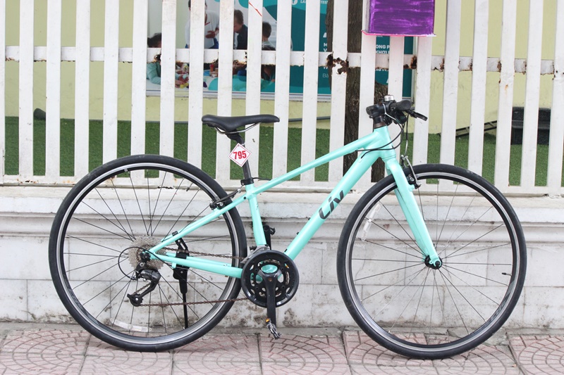 Mã số 795, khung nhôm, sơn zin, sise 35 cm phù hợp cao hơn 1m50 cm, groups Shimano Altus 3 đĩa 9 líp, số gẩy Altus, lốp 700c zin theo xe 700x 38c thông dụng, cọc yên nhún, đùi đĩa nhôm, vành 2 lớp