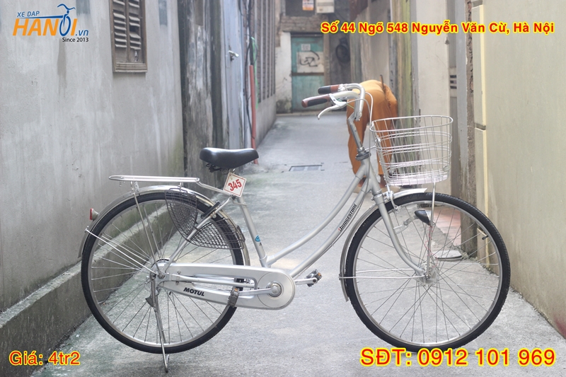 Mã số 345: Xe đạp mini Nhật bãi Bridgestone thương hiệu Nhật . Xe khung thép rắc co chắc chắn - size 42cm, gióng ngang 53cm phù hợp cao từ 1m45, Đùi đĩa zin theo xe. . Mayo Shimano 1 tốc độ. Vành inox không gỉ Bridgestone cỡ 26x1 3/8 Xe đều,, nguyên bản, tổng thể đẹp, nồi đồng cối đá.Gác ba ga inox. Phanh bi Shimano. Khóa càng cua kèm khóa cổ. Giỏ inox zin theo xe. Đèn trước năng lượng, maoy Bridgestone tự động phát sáng khi trời tối