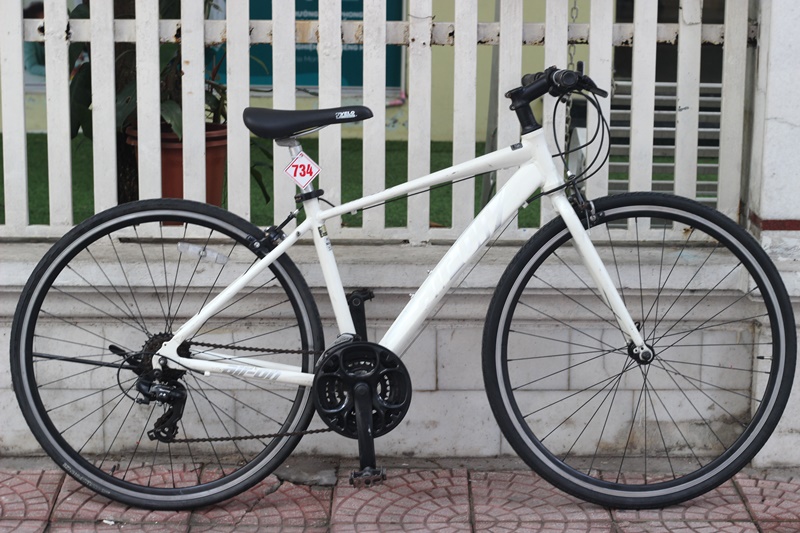 Mã số 734, sise 43 cm, khung nhôm, sơn zin, phù hợp cao hơn 1m55 cm, groups Shimano Tourney 3 đĩa 7 líp số gẩy, vành 700c, lốp 700x 28 c thông dụng zin theo xe. mayo nhôm hiệu Quando