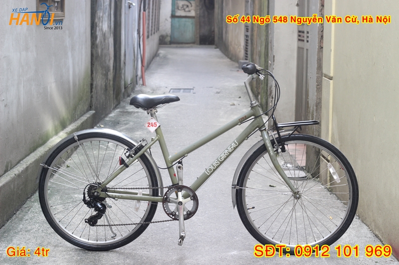 Mã số 245: Xe đạp touring Nhật bãi Louis Garneau thương hiệu nổi tiếng của Canada. Size 42cm, gióng ngang 53cm phù hợp 1m45 trở lên, khung nhôm nhẹ. Đùi Lasco zin theo xe. . Group Shimano 1 đĩa 6 líp tay đề xoay vặn Shimano. Mayo nhôm Valisun. Vành nhôm - Lốp 26x1.5. Phanh má Shimano. Ghi đông có thể điều chỉnh cao thấp tùy ý.