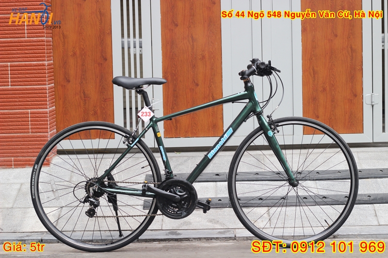 Mã số 233: Xe đạp touring Nhật bãi Asahi Cycle tới từ thương hiệu nổi tiếng của Nhật Bản. Tem dán Bianchi chỉ mang tính hình thức đẹp. Tem vàng đã đăng ký sở cảnh sát Nhật. . Size 46cm, gióng ngang 52cm phù hợp 1m55 trở lên, khung nhôm nhẹ nhàng. Đùi đĩa Prowheel zin theo xe. Group Microshift R8 3 đĩa 7 líp tay đề bấm xả Microshift. Vành nhôm - Lốp 700x23 zin. Pô tăng, ghi đông nhôm. Xe có dặm tút để đẹp ngoại hình.