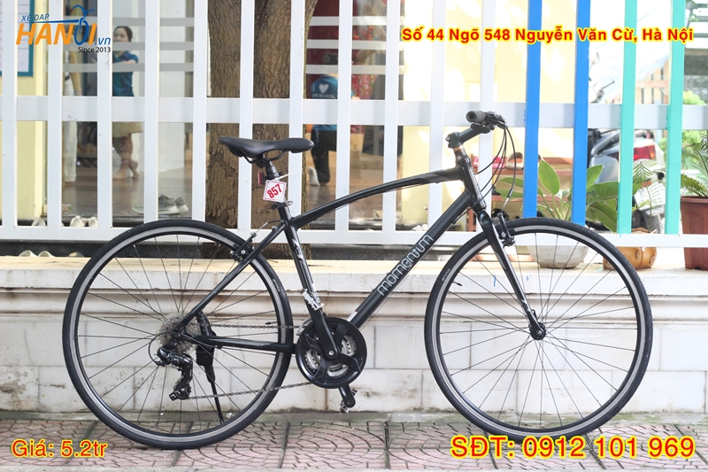 Mã số 857: Xe đạp touring Nhật bãi Momentum thương hiệu Đài Loan size 46cm phù hợp 1m55 trở lên, khung nhôm Đùi đĩa zin theo xe 3 đĩa 8 líp tay bấm xả Shimano. Group Shimano Tourney. Vành nhôm - 700x28c. Phanh má Tektro. Mayo Joytec. Càng trước nhôm