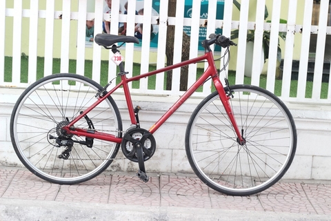 Mã số 789, khung nhôm, sise 40 cm phù hợp cao hơn 1m55 cm, groups Shimano 3 đĩa 8 líp, đề sau Acera, vành 700c Safty, lốp 700x 32c còn khá mới...