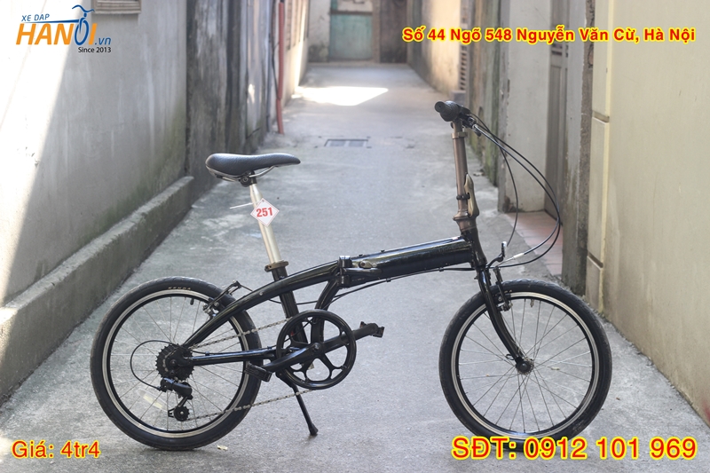 Mã số 251: Xe đạp trẻ em gấp Nhật bãi. Xe có đủ các tem đã sử dụng tại thị trường Nhật. Size 28cm, gióng ngang 57cm phù hợp 1m35 - 1m7 đều đi được. Khung nhôm nhẹ. Đùi đĩa Prowheel zin theo xe. . Group Shimano 1 đĩa 7 líp tay đề xoay vặn Shimano. Vành nhôm - Lốp 20 x 1.75. Xe gập gọn lại để trong cốp ô tô hoặc đi dã ngoại.