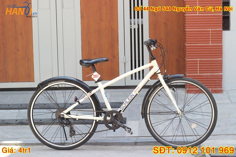 Mã số 287: Xe đạp trẻ em Nhật bãi Bridgestone Schlein thương hiệu tới từ Nhật. Size 38cm, gióng ngang 51cm phù hợp từ 1m40 trở lên. Khung nhôm nhẹ nhàng. Đùi đĩa Bridgestone Schlein zin theo xe. . Group Shimano 1 đĩa 7 líp tay đề bấm, kéo Shimano. Vành nhôm - Lốp zin Bridgestone 24 x 1 3/8. Yên xe Bridgestone zin. Mayo Nakano. Phanh bi. Ghi đông, pô tăng có thể nâng cao tùy theo chiều cao người đạp.