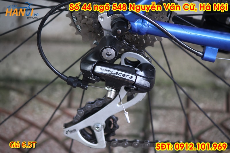 Mã số 568, khung nhôm, sơn zin, sise 47 cm, gióng ngang 53 cm phù hợp cao hơn 1m60 cm, đùi đĩa nhôm Shimano, sủ đề sau Acẻa, xe được trang bị 3 đĩa 8 líp số gẩy, vành lốp 27,5 x 195 thông dụng zin theo xe, khóa càng cua