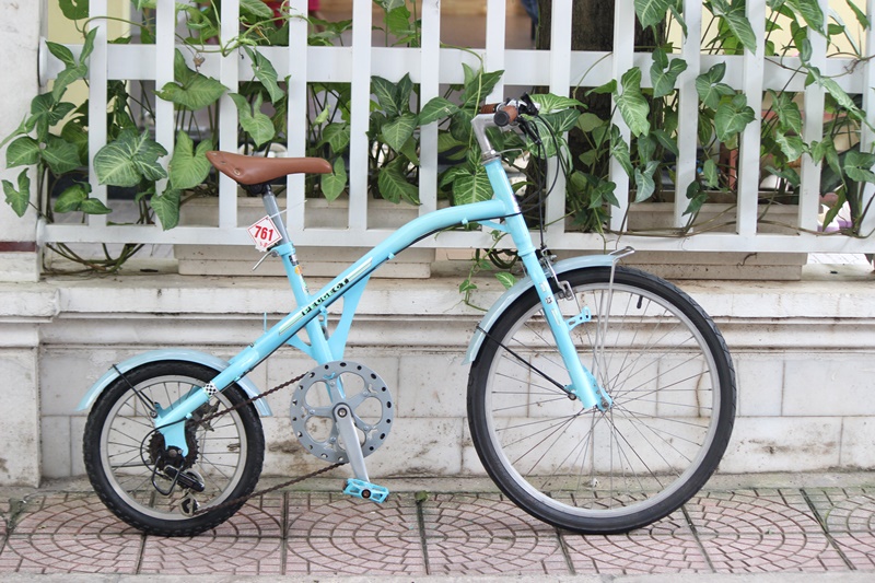 Mã số 761, khung thép, sise 38 cm, gióng ngang 51 cm phù hợp cao hơn 1m50 cm, bánh sau 16 inc, bánh trước 24 inc, mayo nhôm Il Joyteck, vành nhôm, groups Shimano 1 đĩa 7 líp, Postang Zoom