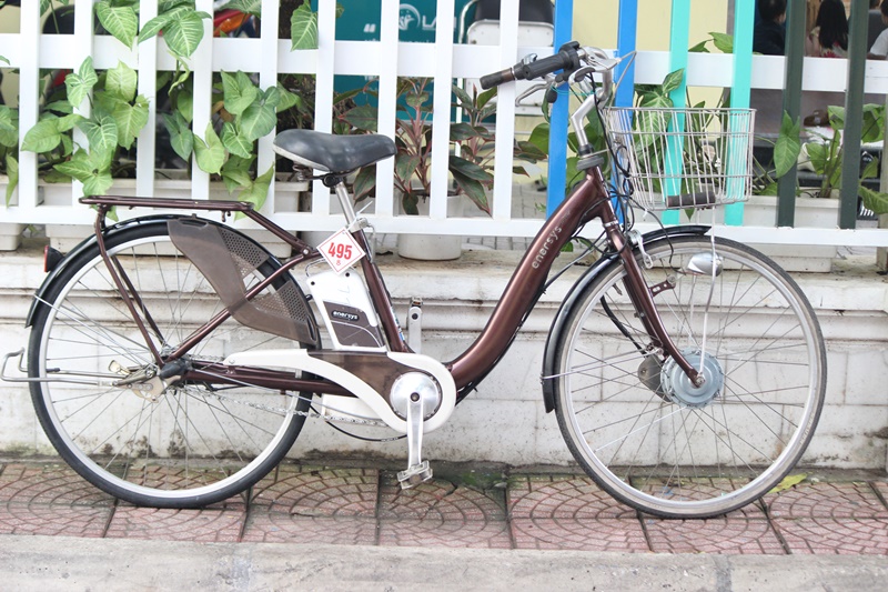 Mã số 495, khung nhôm, sise 41 cm, gióng ngang 56 cm,khóa cổ, khóa càng cua zin theo xe, gacbaga zin, vành nhôm 26 Inc , lốp 26 x 13/8 thông dụng, mayo sau ba số trong như xe mini Nhật, pin 11ah đi đươc gần 30 km nếu đi kéo ga, trợ lực đi được hơn 40 km, độ bền pin thường từ 2 đên 5 năm, đạp không pin khá nhẹ nhàng